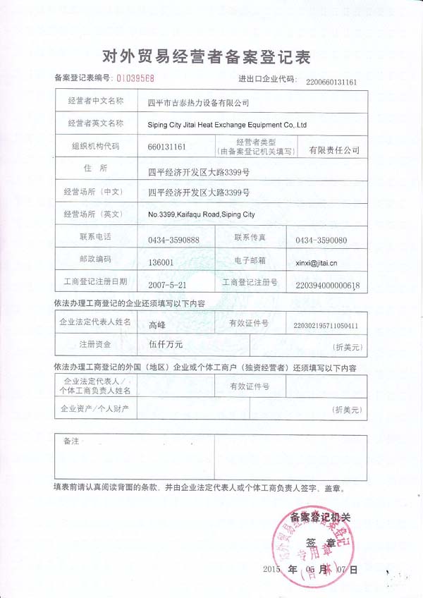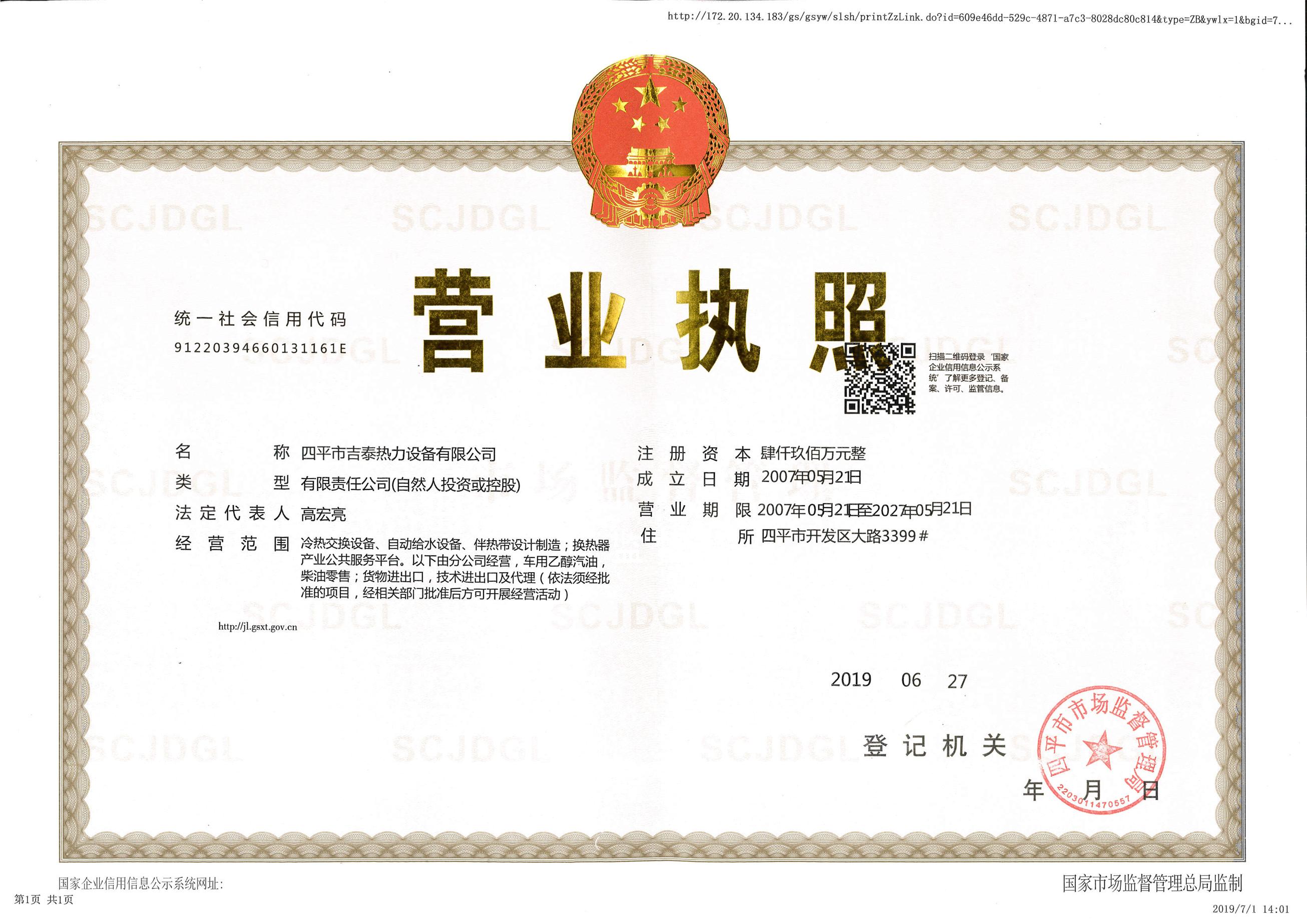 ○ 四平市吉泰熱力設(shè)備有限公司—危